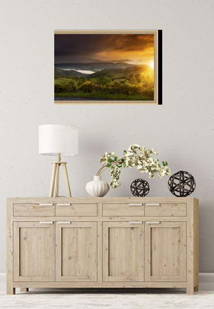 Disponible en plusieurs finitions, ce tirage photo paysages Auvergne est proposé sur :